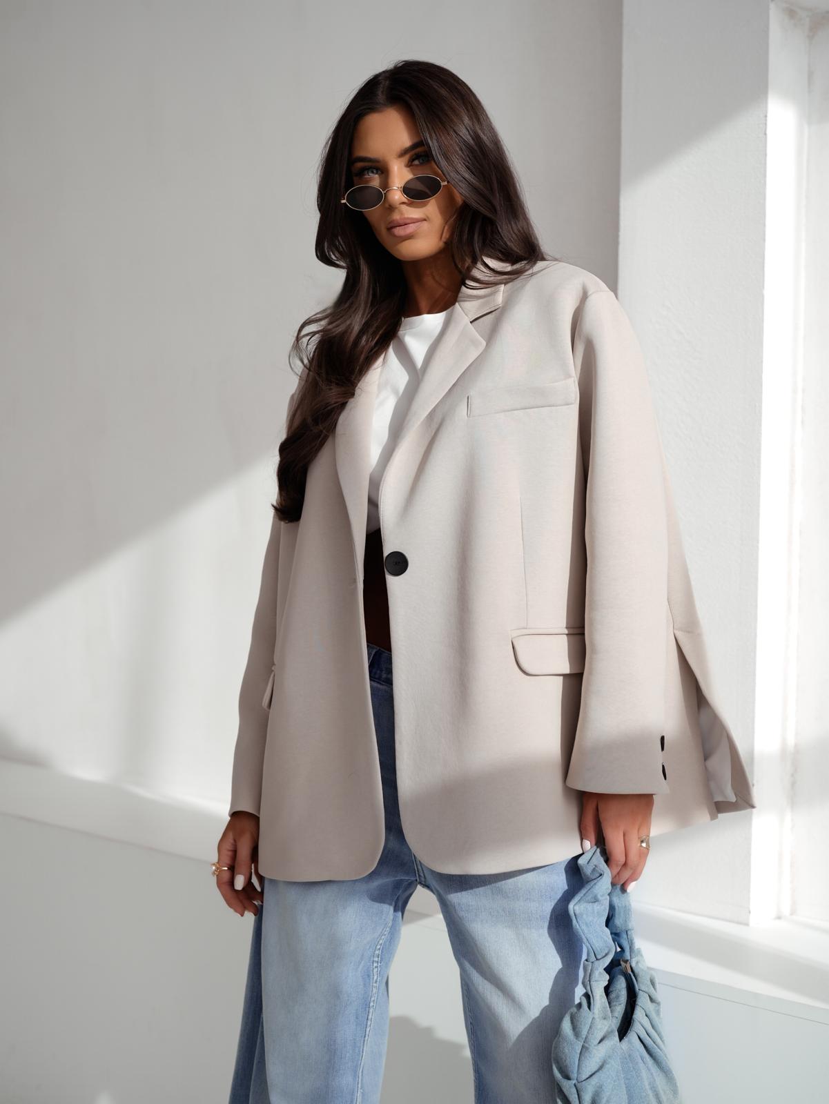 Bawełniana dresowa marynarka oversize Greige szarość z beżem Me Gusta
