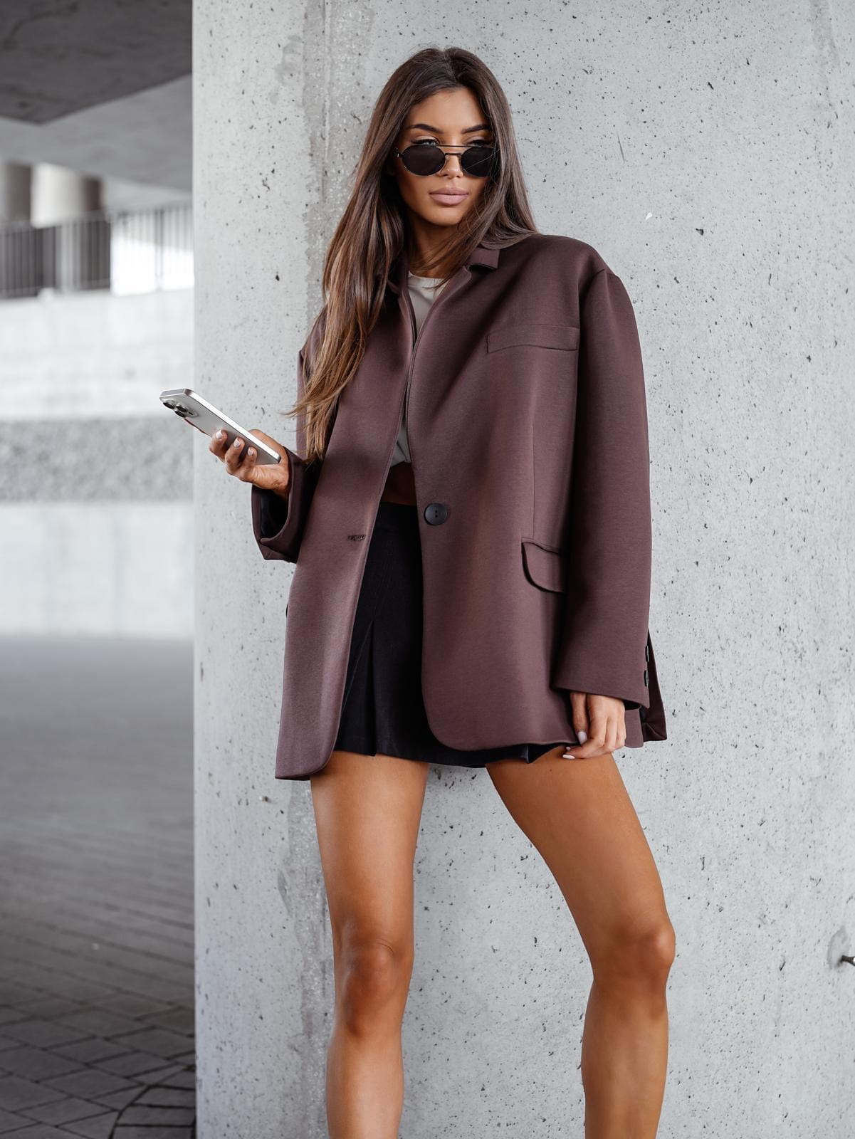 Bawełniana dresowa marynarka oversize czekolada Me Gusta