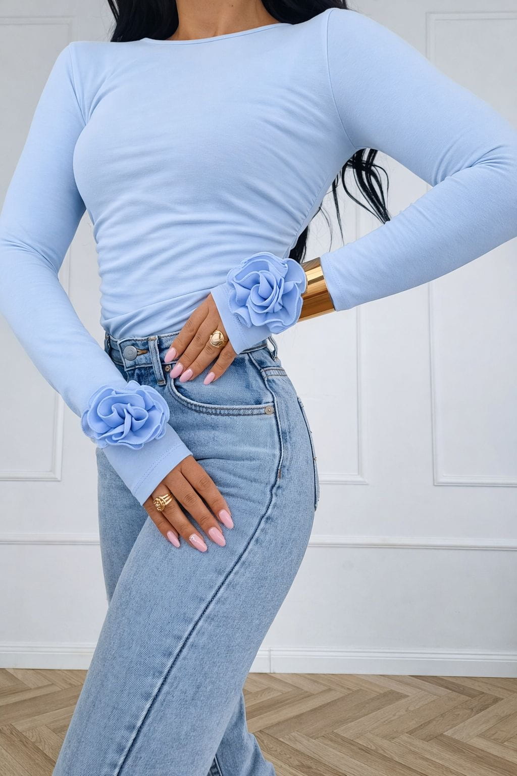 Bluzka Lady z różą i otworem na palec baby blue