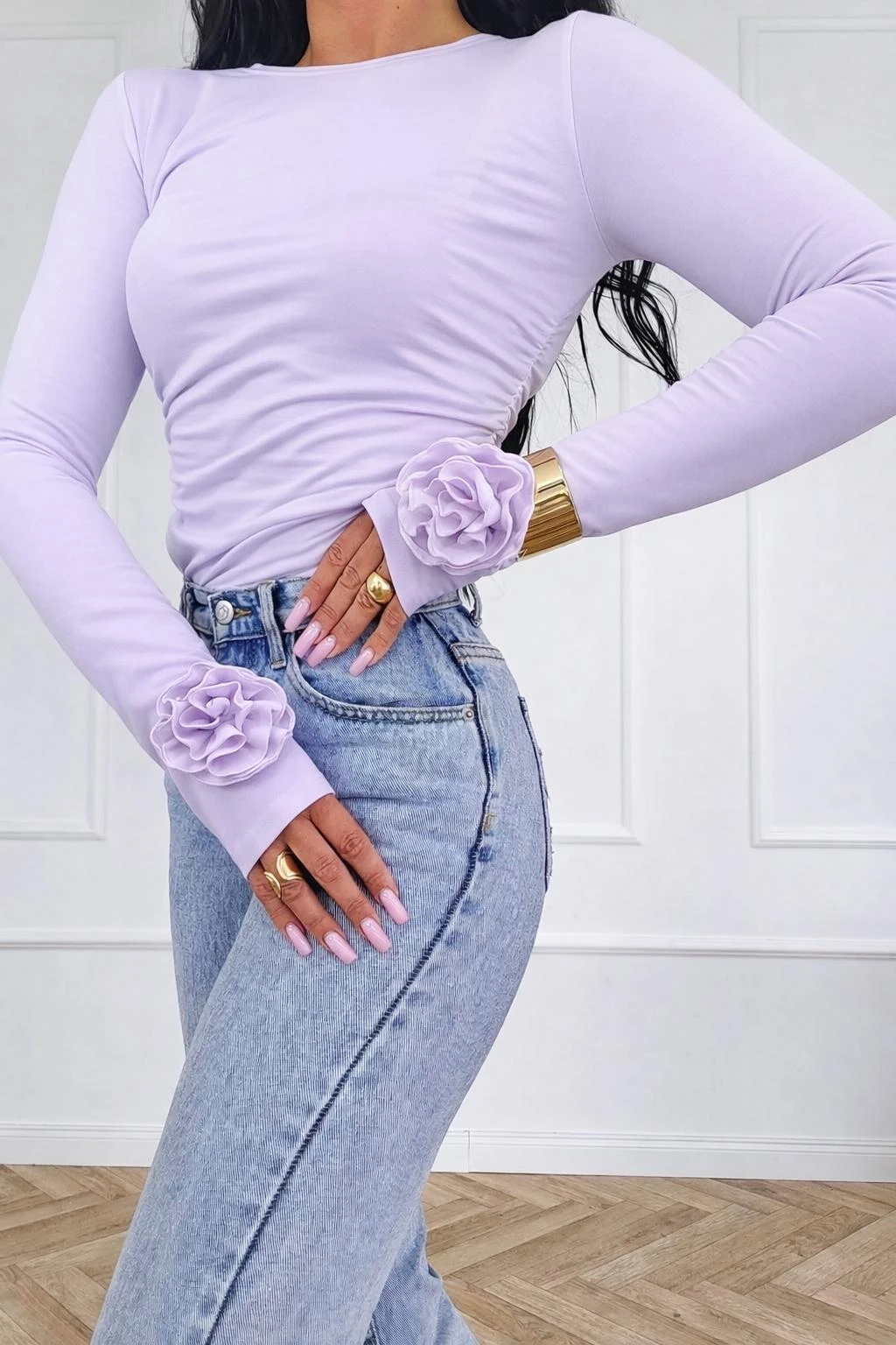 Bluzka Lady z różą i otworem na palec lilia