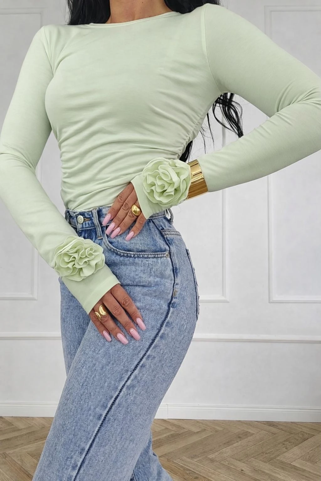 Bluzka Lady z różą i otworem na palec mięta