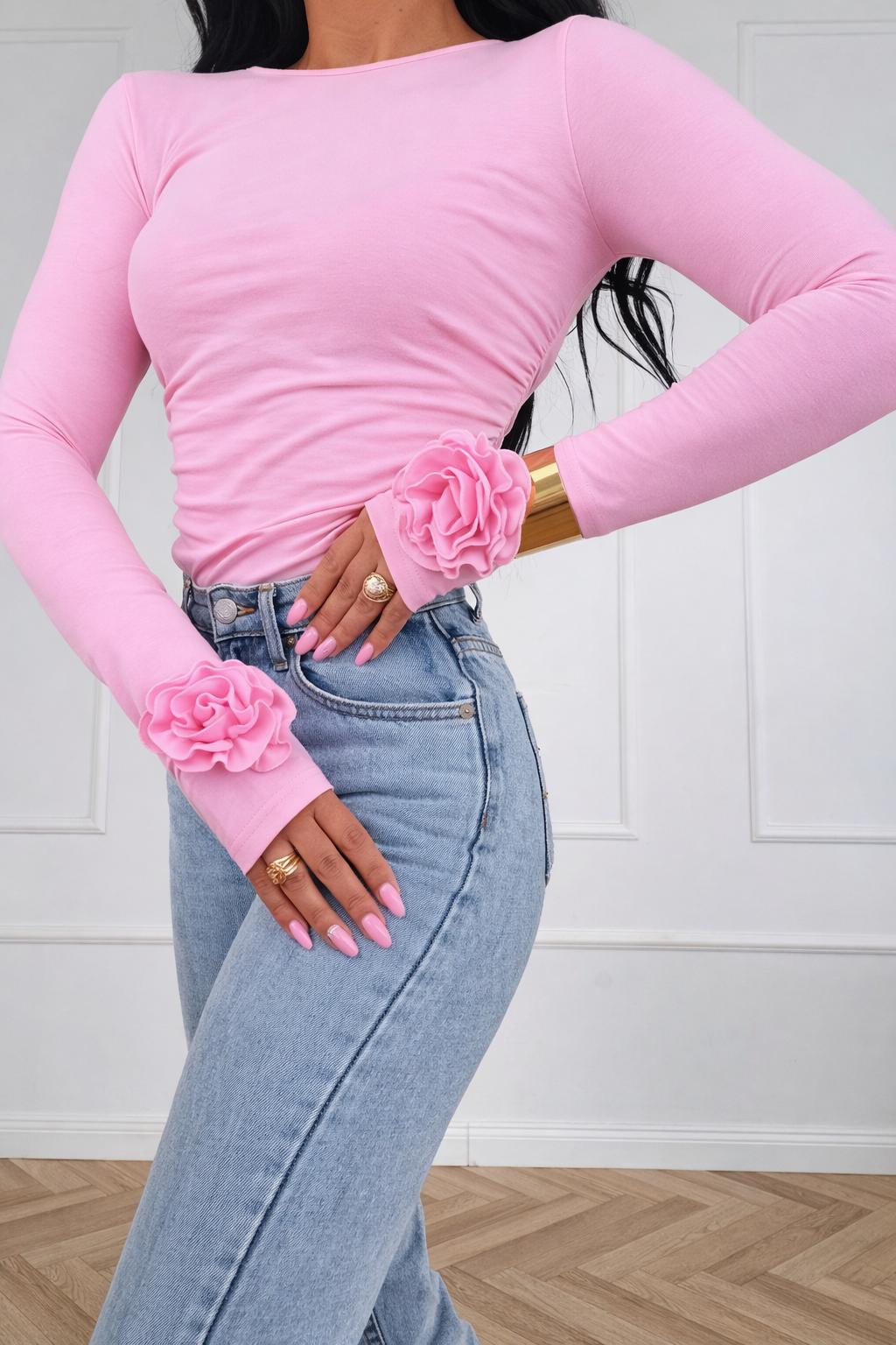 Bluzka Lady z różą i otworem na palec pudrowy róż