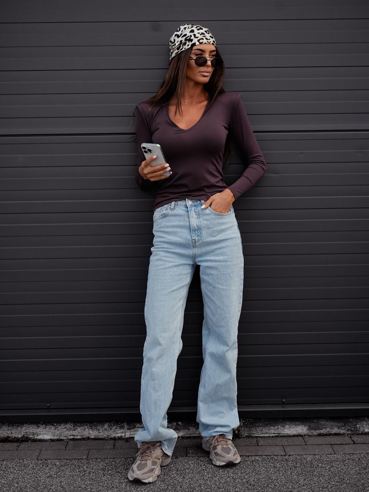 Bluzka z dekoltem poduszki na ramionach brązowa Me Gusta