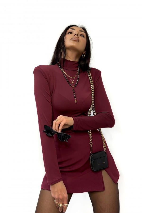 Golf z poduszkami na ramionach burgund bordo La Milla