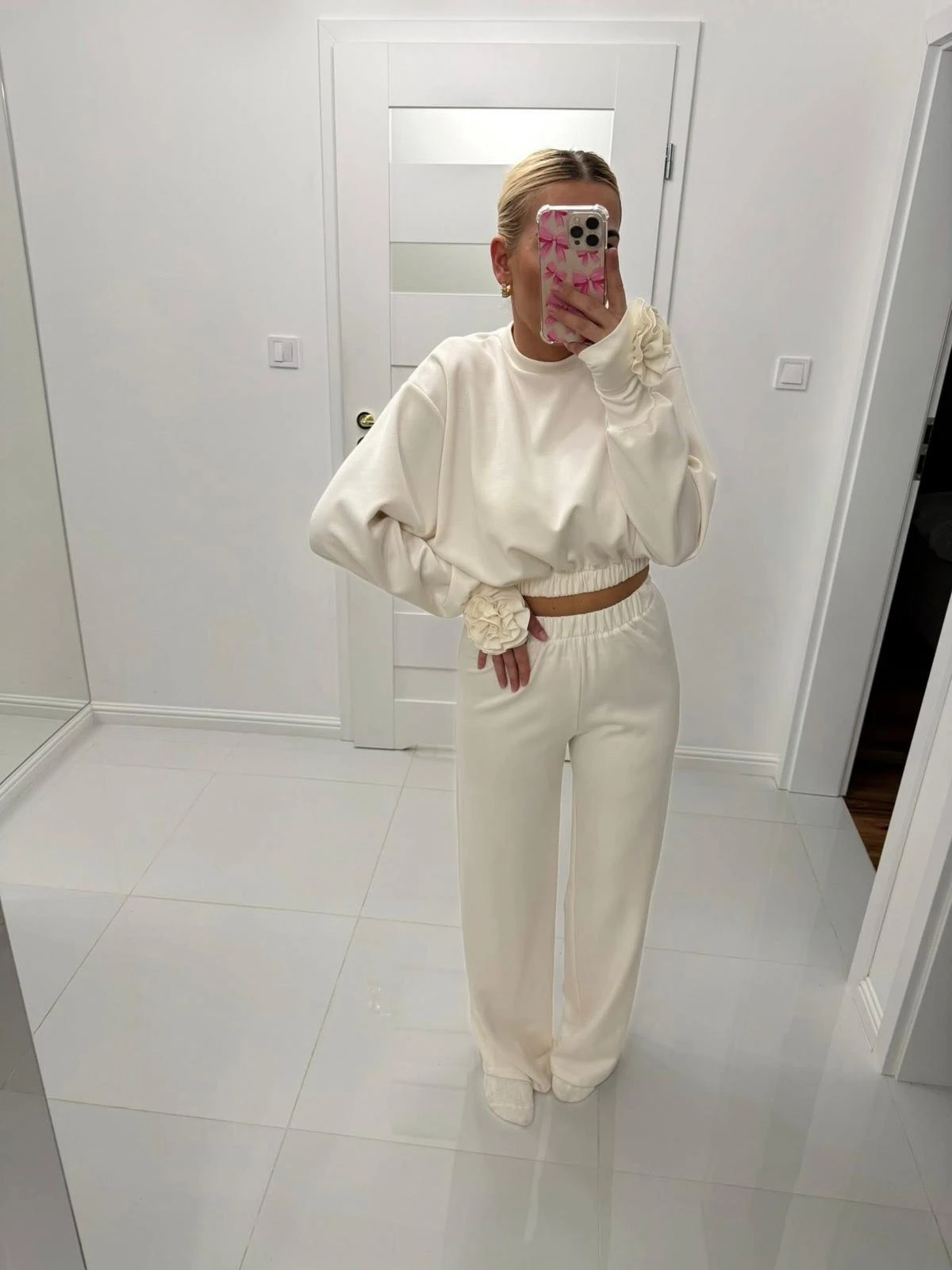 Komplet dresowy z różą na mankiecie – elegancja w domowym wydaniu