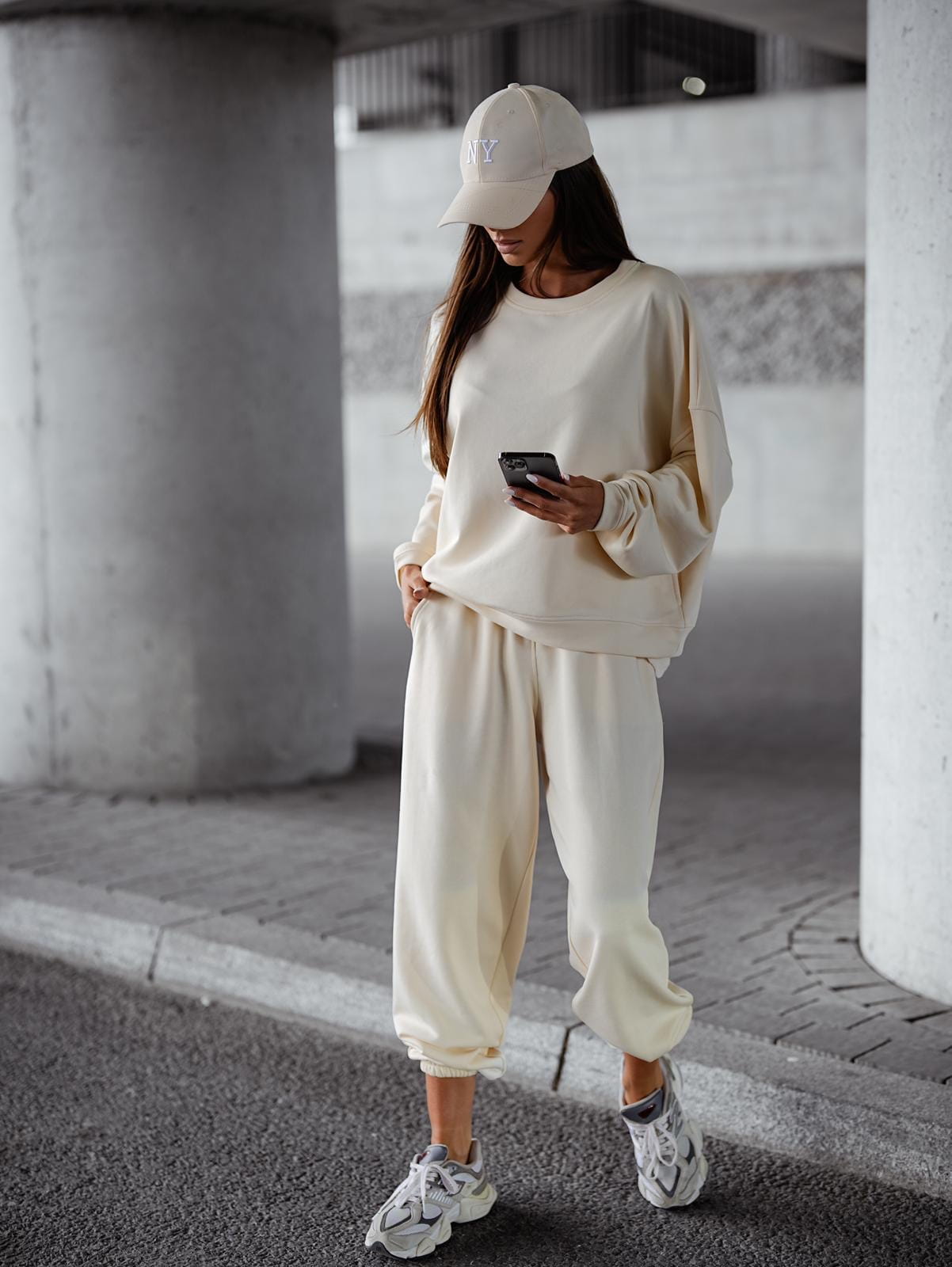 Ten oversize’owy komplet powstał z myślą o kobietach, które żyją w biegu, ale nie chcą rezygnować ze stylu. Miękka dzianina, starannie dobrane kolory i swobodny krój sprawiają, że to idealny zestaw na każdą okazję – spacer po mieście, kawę z przyjaciółką czy codzienne obowiązki.