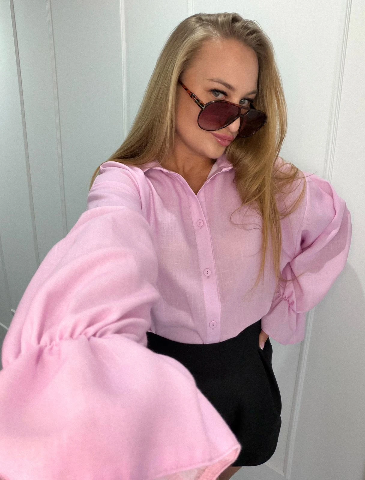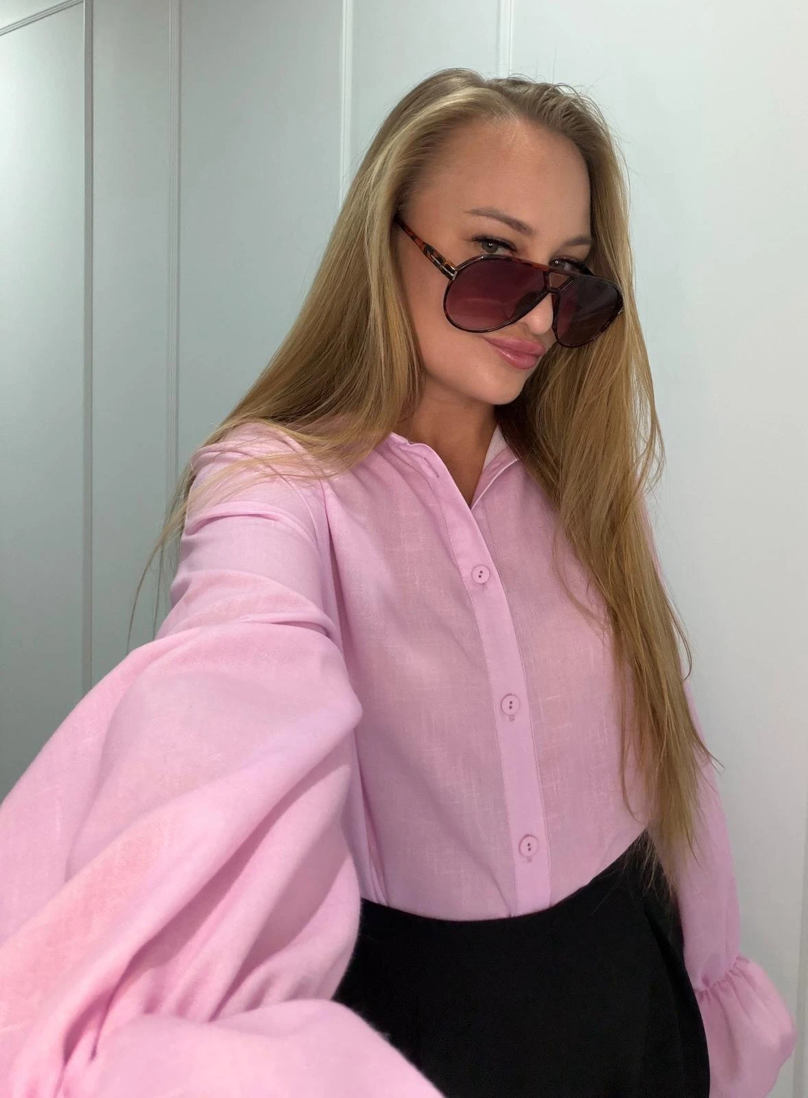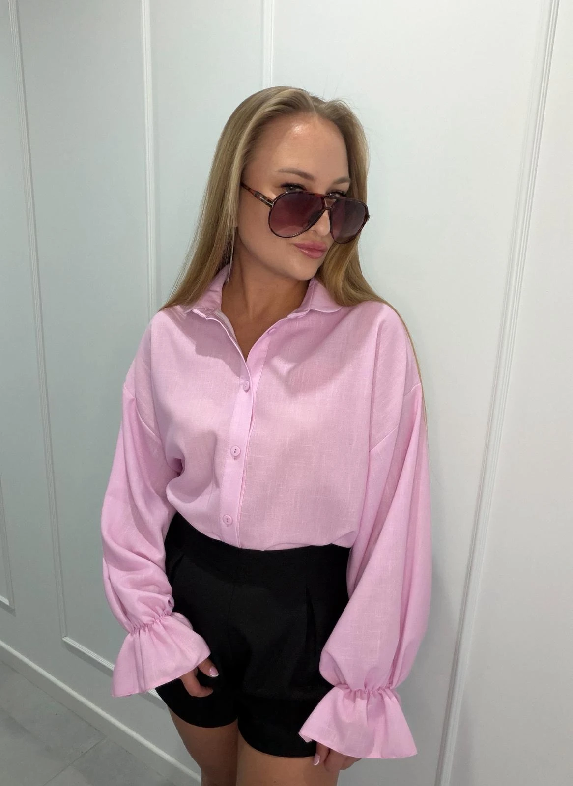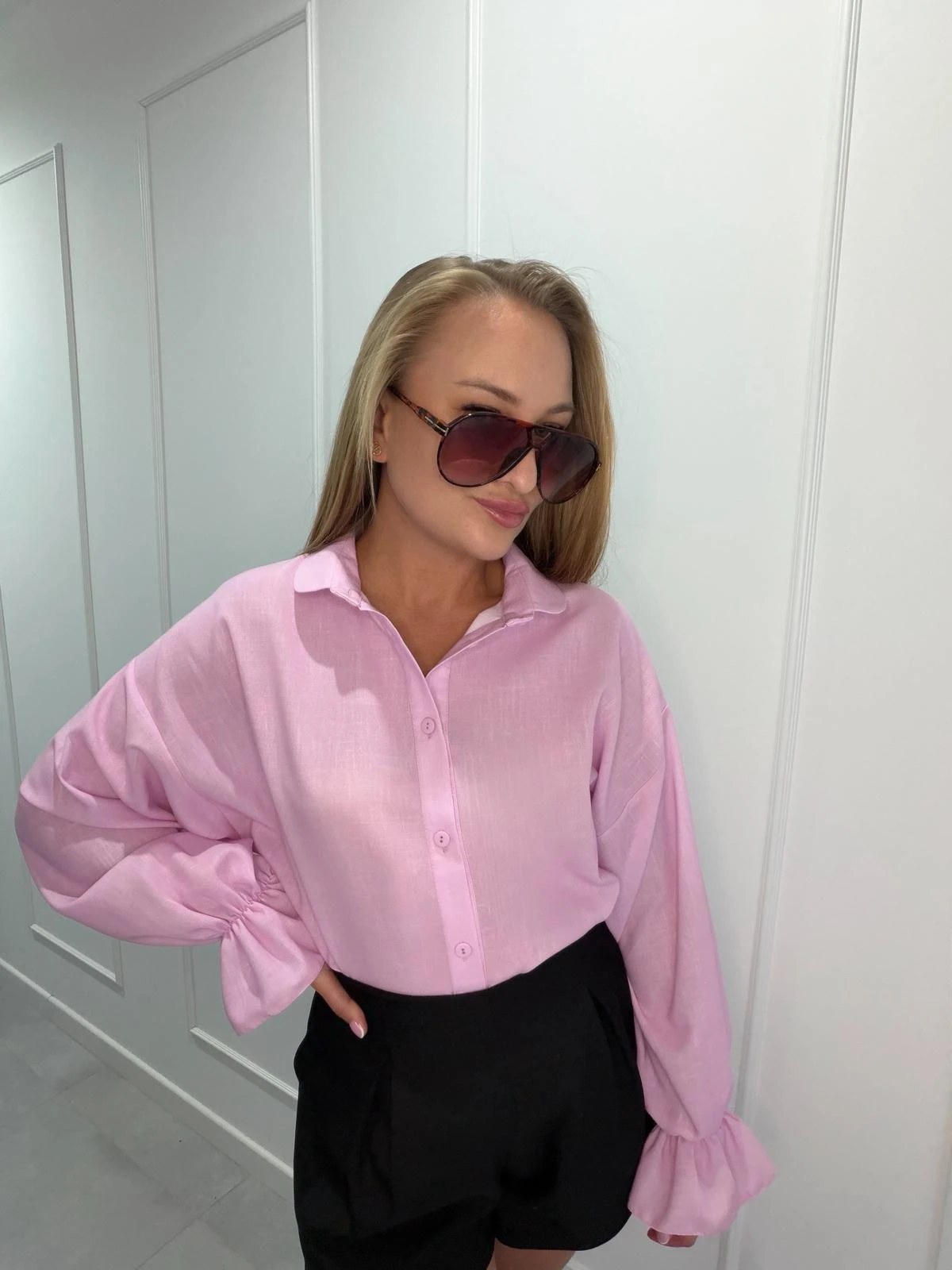 Model o luźniejszym kroju z subtelnie opuszczoną linią ramion i efektownymi, marszczonymi mankietami, które nadają całości kobiecego charakteru. Delikatnie transparentna tkanina pięknie układa się na sylwetce, tworząc stylowy i niewymuszony look.
