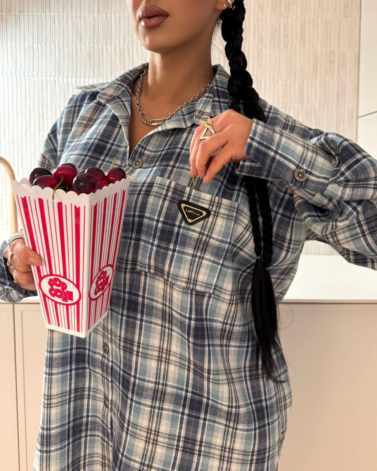 Bawełniana koszula w kratę marki LA MILLA o luźnym, stylowym kroju. Wykonana z miękkiej i przyjemnej w dotyku bawełny, zapewnia komfort noszenia na co dzień. Klasyczny kołnierzyk, zapinanie na guziki oraz charakterystyczne trójkątne logo nadają jej modnego, casualowego charakteru. Idealna do jeansów i miejskich stylizacji.