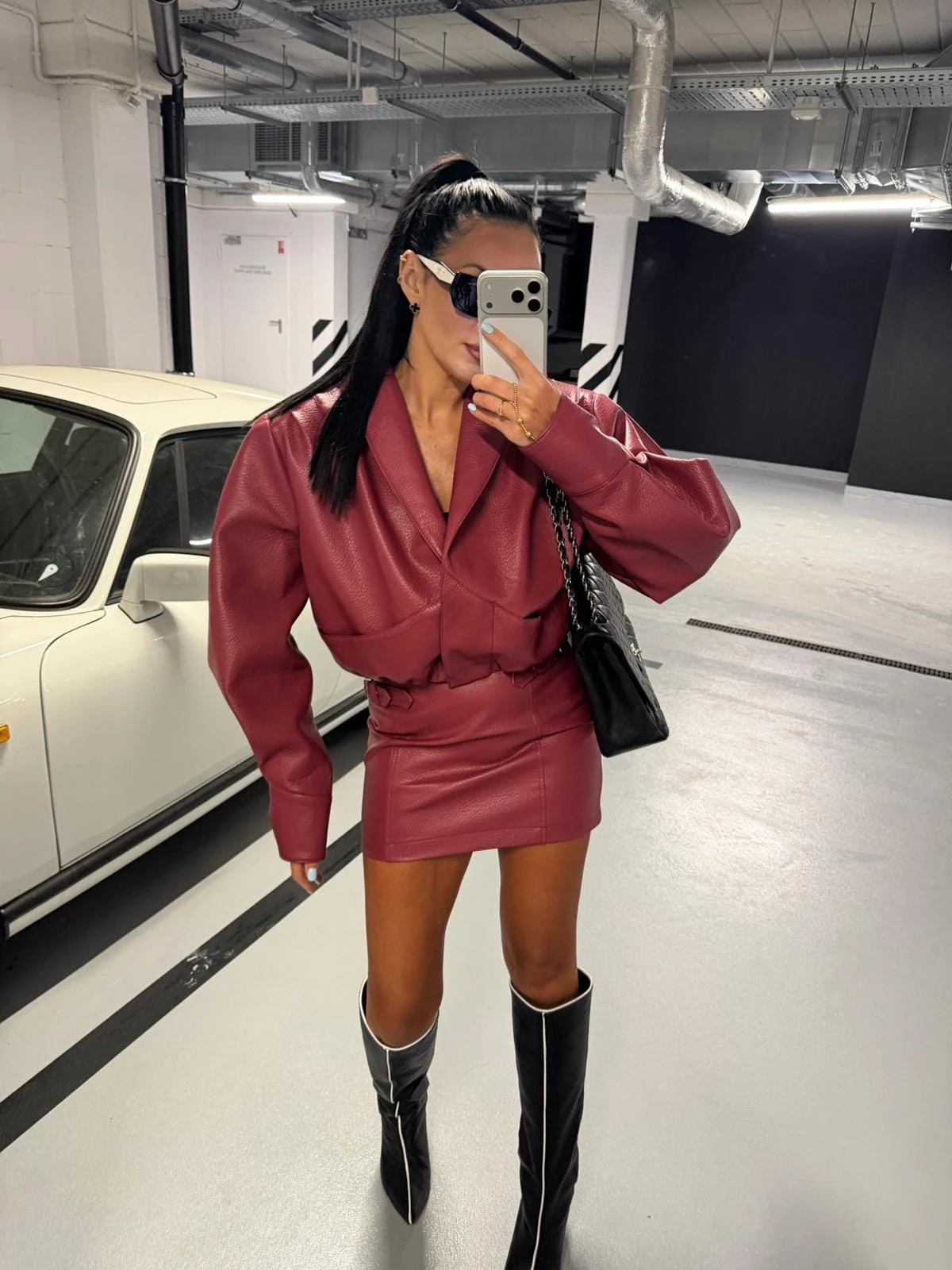 Wyjątkowa, krótka bomberka wykonana z wysokiej jakości ekoskóry o subtelnej, naturalnej fakturze. Model w intensywnym, szminkowym kolorze, który przyciąga spojrzenia i nadaje stylizacji wyrazistego, kobiecego charakteru.