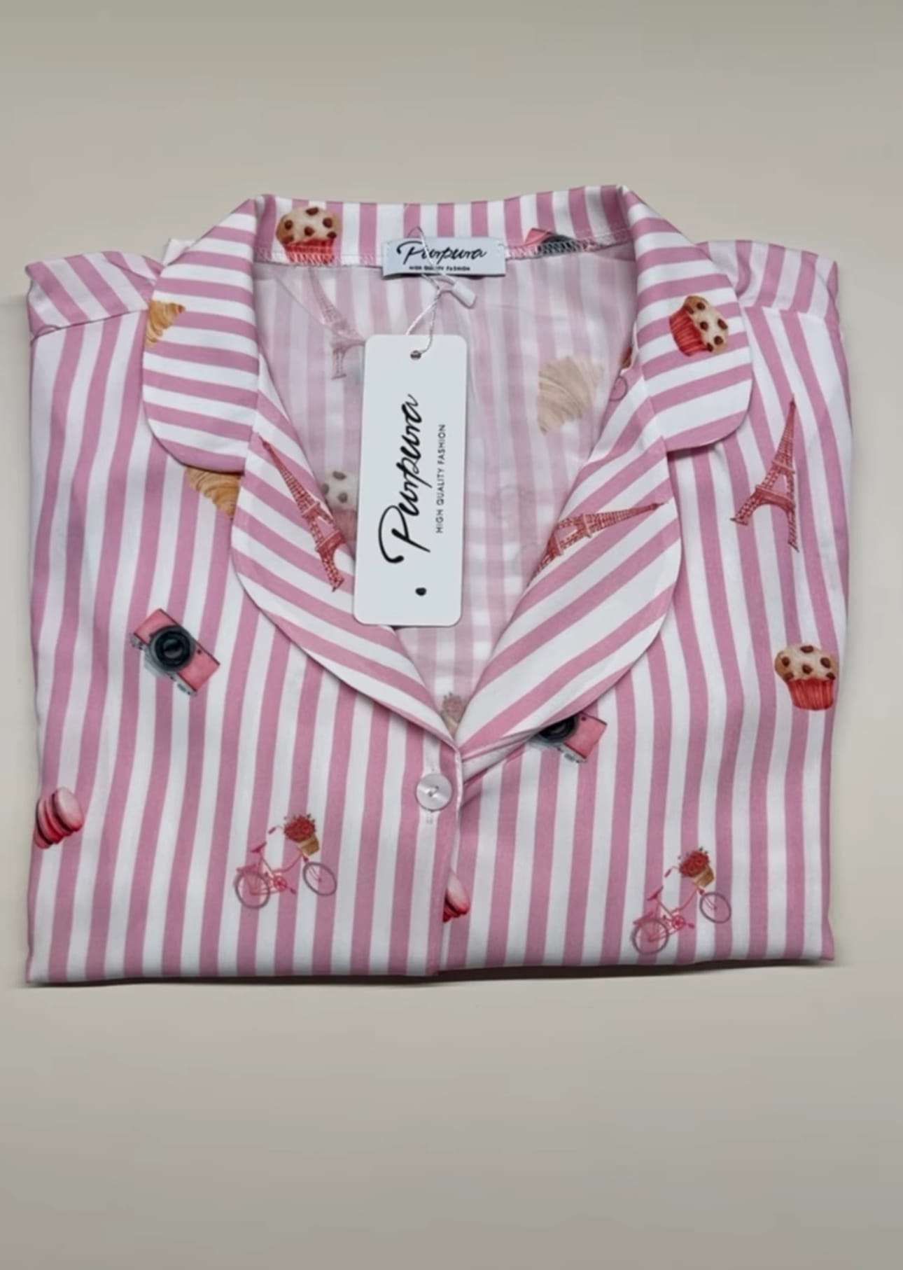 Piżama Sweet Paris śmietanka pudrowy róż Purpure