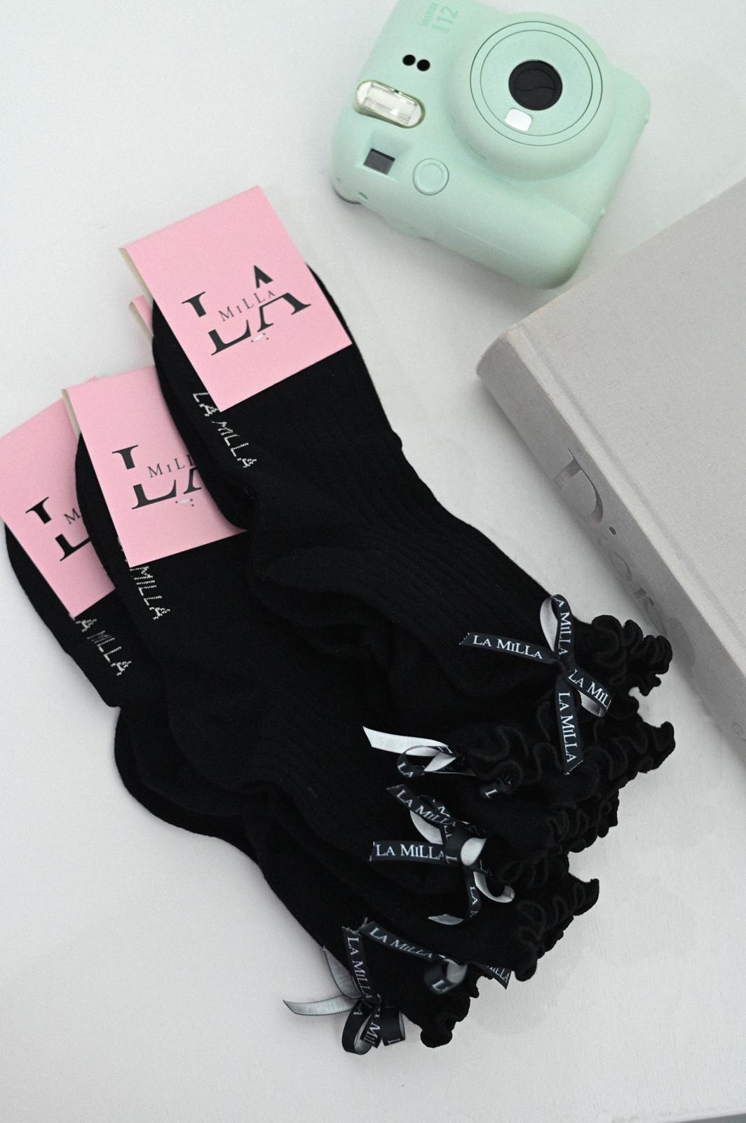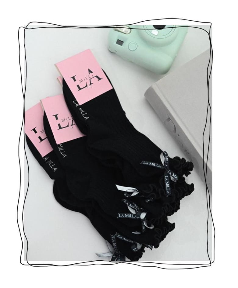 Prążkowane skarpetki z efektowną aplikacją 3D w formie kokardki z logo La Milla.