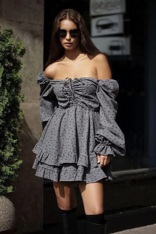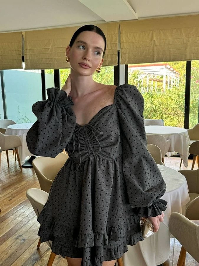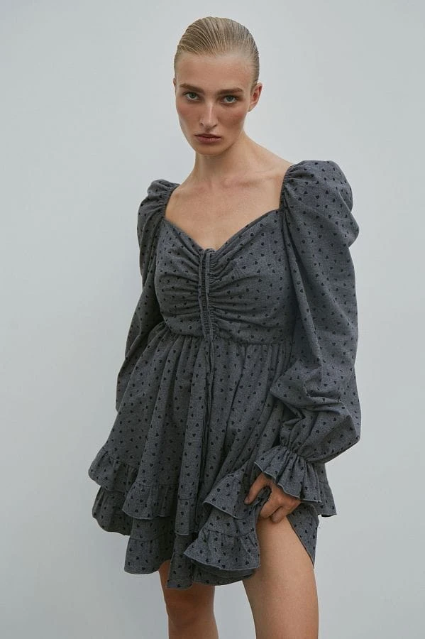 Sukienka z ciepłej bawełny – ciemnoszara w czarne serduszka