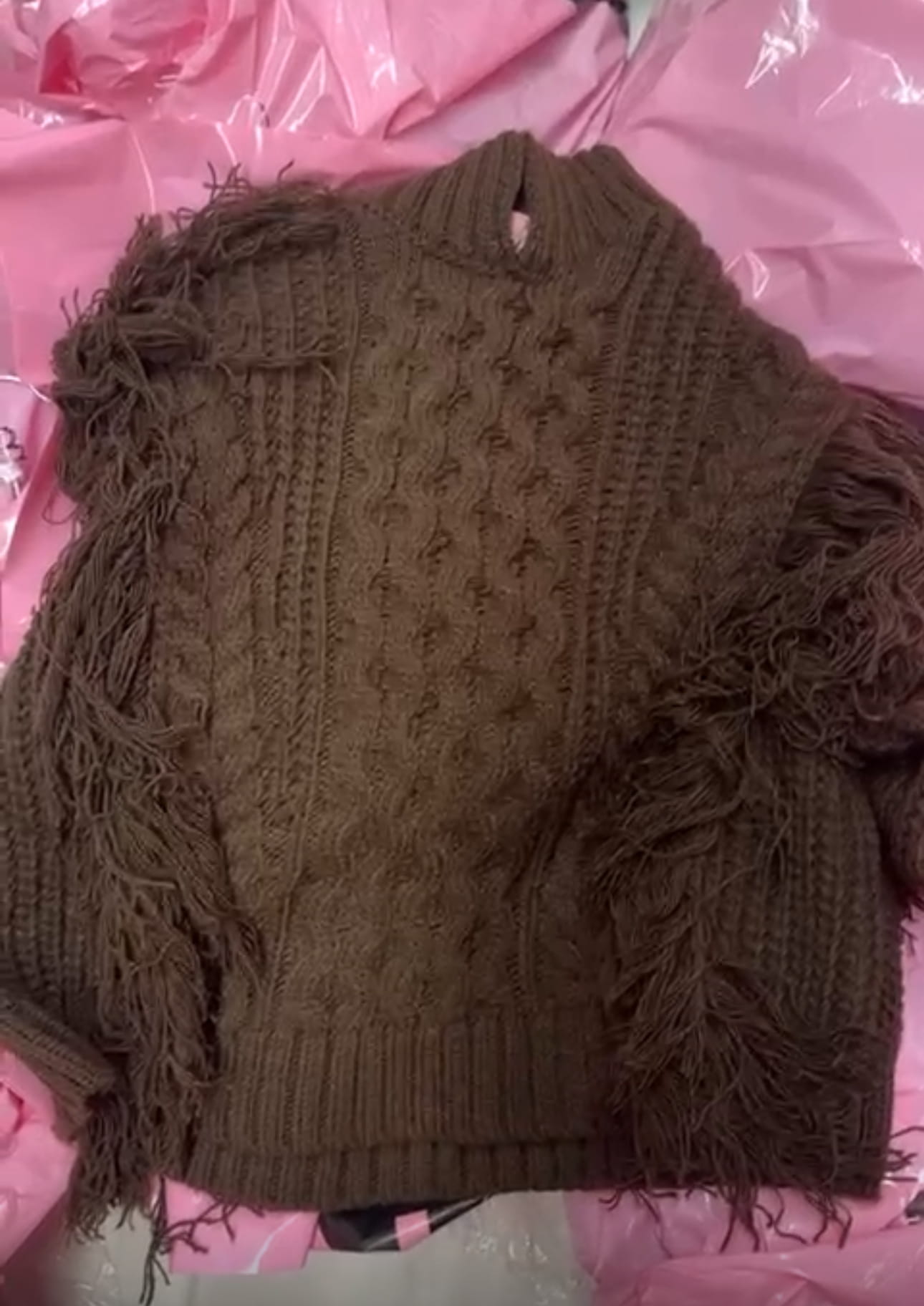 Czekoladowy brąz sweter premium z frędzlami ✨