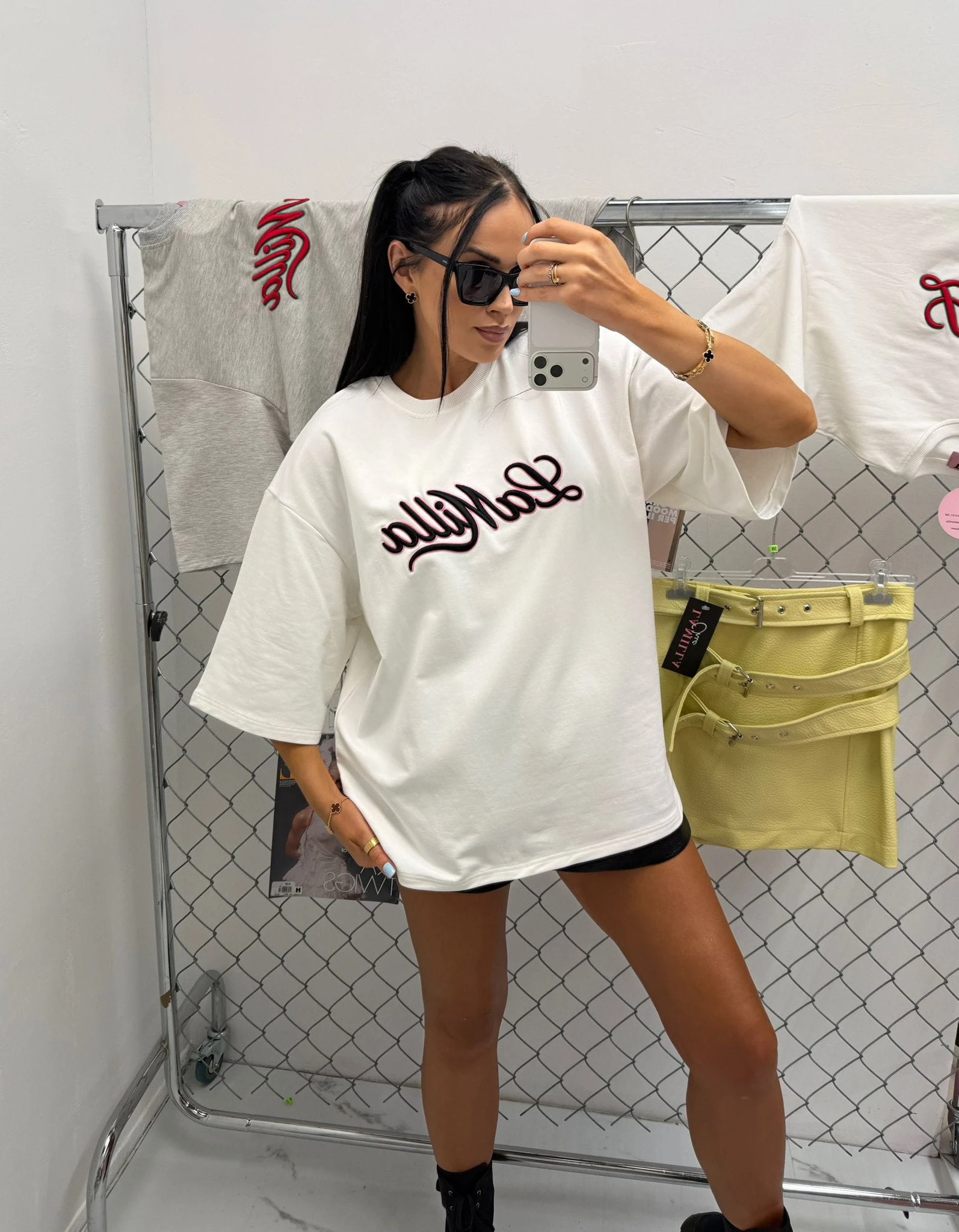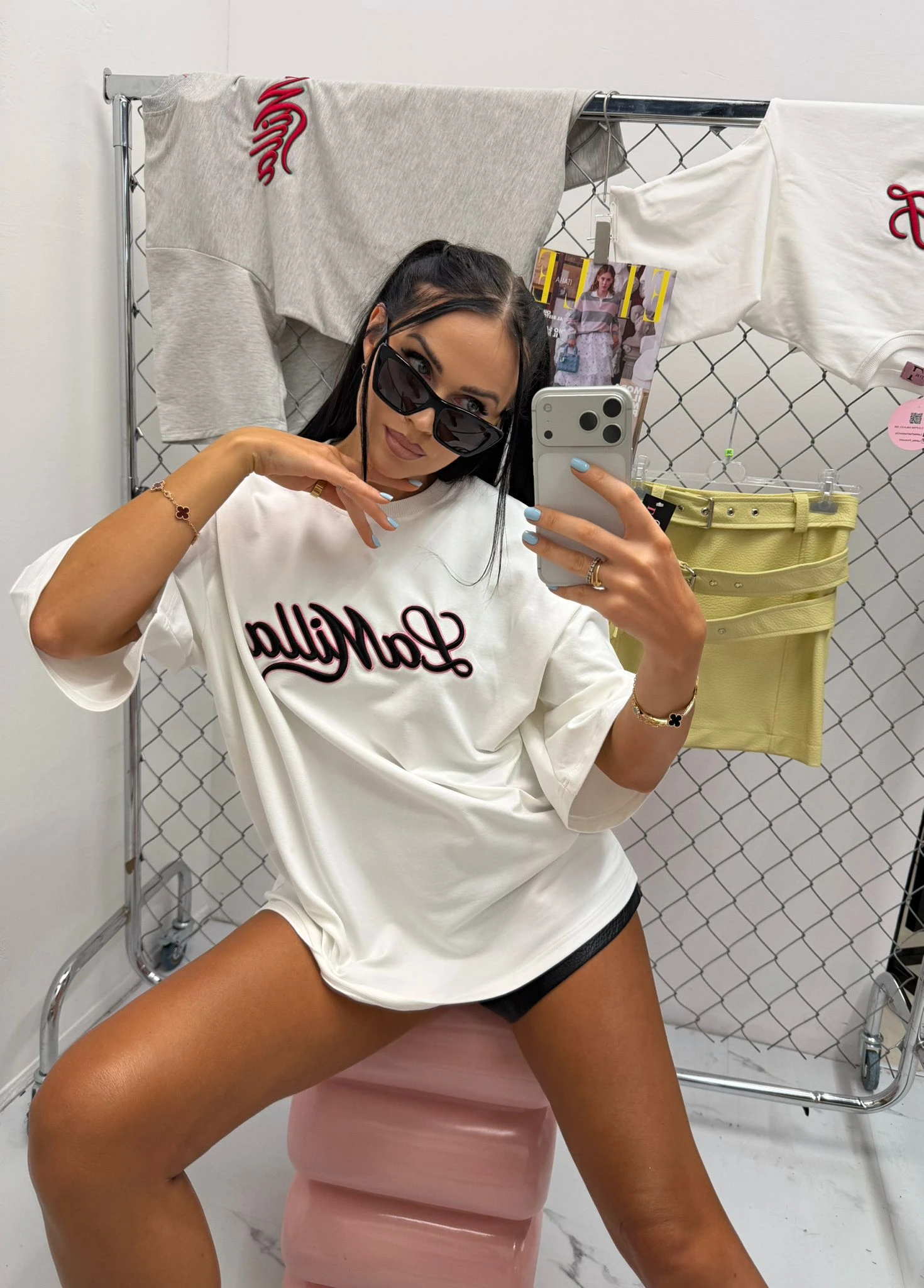 Kontrastowy napis na przodzie nadaje koszulce sportowego charakteru i sprawia, że staje się wyrazistym elementem stylizacji. Świetnie komponuje się zarówno z jeansami, kolarkami czy dresami, jak i w bardziej modnych zestawach z marynarką lub spódnicą.