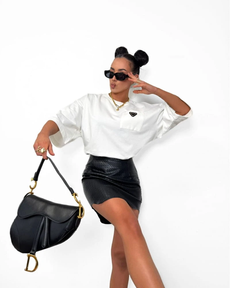 Stylowa bluzka damska w kroju oversize to doskonały wybór dla kobiet ceniących komfort i nowoczesny design. Luźny fason pięknie układa się na sylwetce, zapewniając swobodę ruchów, a ozdobna kieszonka dodaje całości modnego, wyróżniającego charakteru.