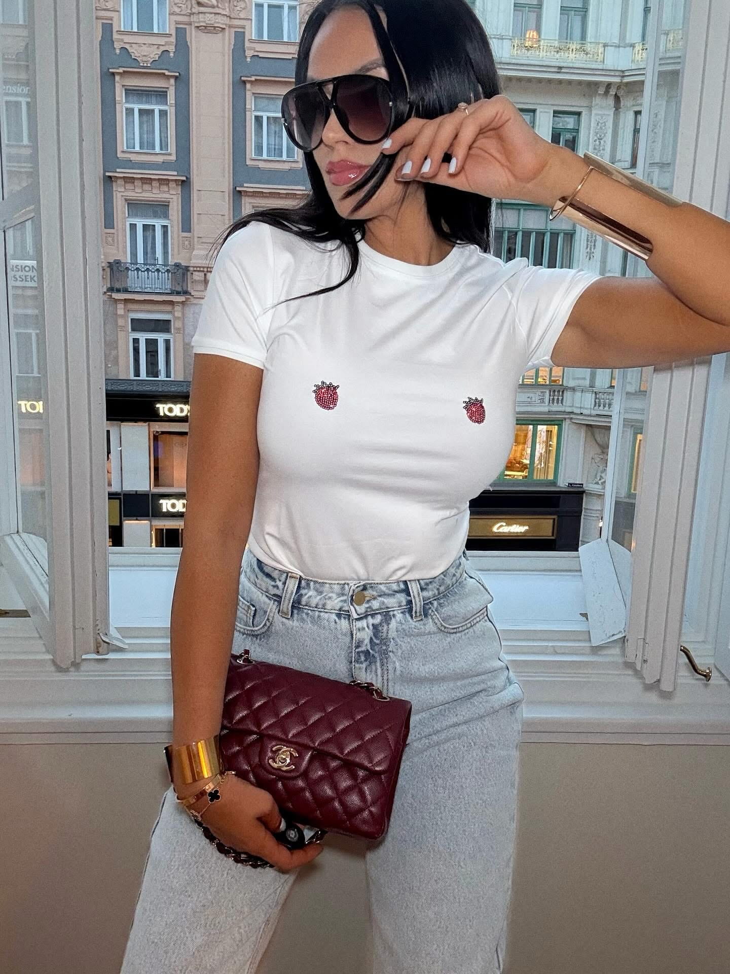 Luksusowy T-shirt z kryształkowymi truskawkami