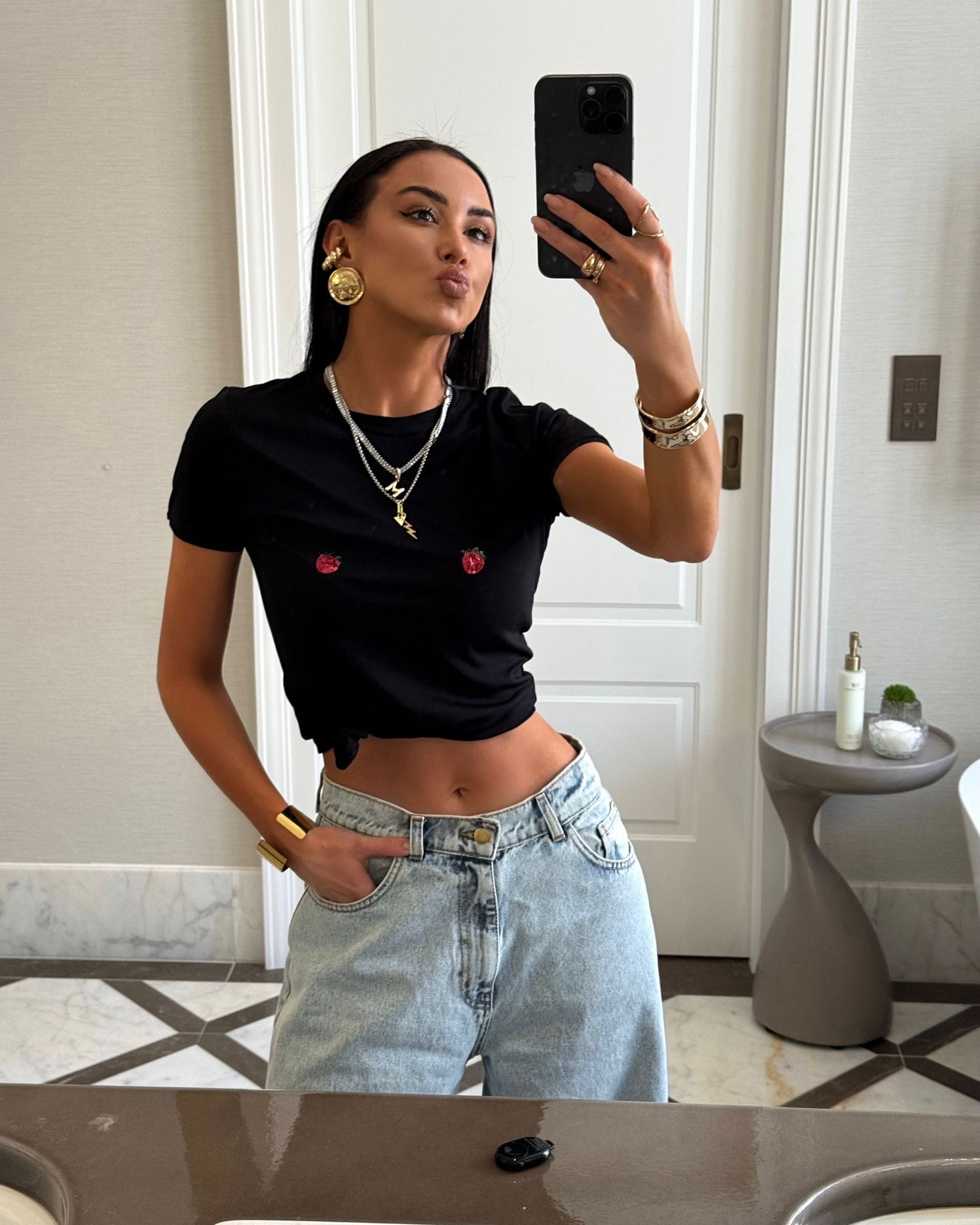 T-shirt damski z kryształkowymi truskawkami czarny La Milla